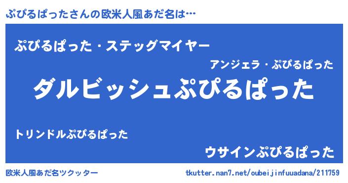 | 男性向けラノベタイトル風あだ名 | 『ぷぴるぱったという概念が存在しない退屈な世界 』 |