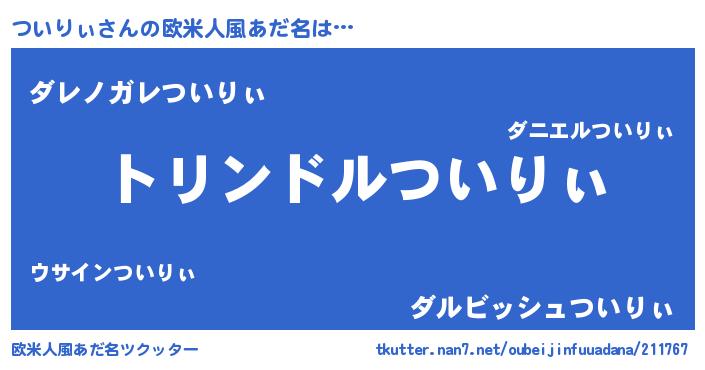 | ヘコむあだ名 | 『ついりぃ(笑)』『ついっちょ』 |