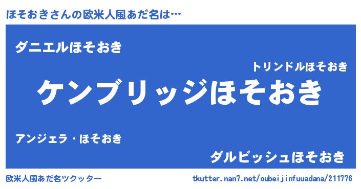 | 意味不明あだ名 | 『自称ほそおき』『永久保存ほそおき』 |