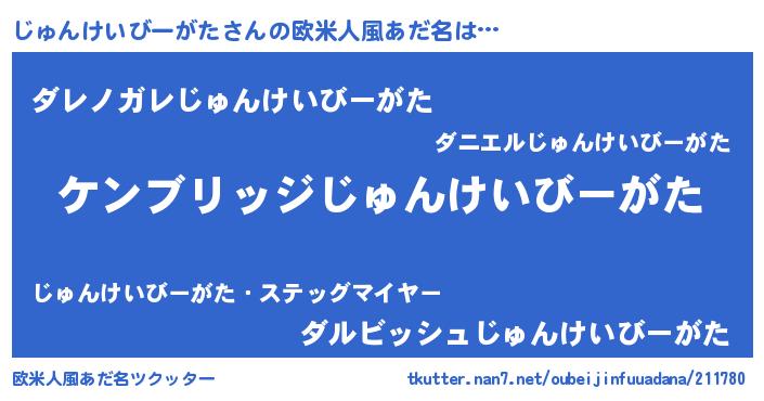 | 女子向けラノベタイトル風あだ名 | 『じゅんけいびーがたなんてお断りですっ。』 |