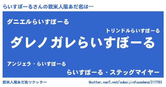 | 男性向けラノベタイトル風あだ名 | 『この素晴らしい世界にらいすぼーるを!』 |