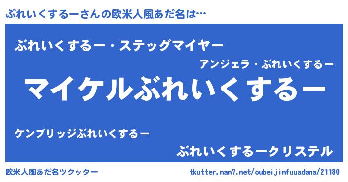 | 男性向けラノベタイトル風あだ名 | 『ぶれいくするーの憂鬱』 |