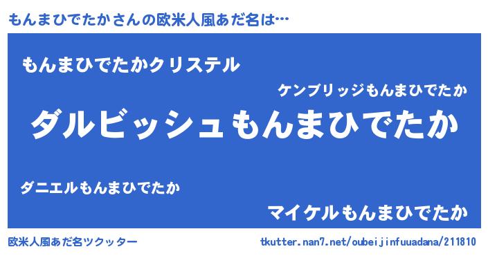 | 男性向けラノベタイトル風あだ名 | 『もんまひでたかという概念が存在しない退屈な世界 』 |