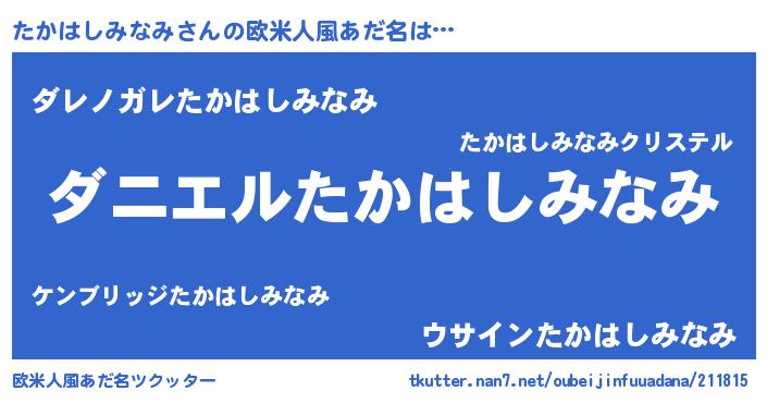 | 男性向けラノベタイトル風あだ名 | 『ノーゲーム・ノータカハシミナミ』 |