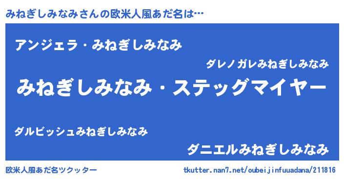 | 胡散臭い通販商品みたいなあだ名 | 『100人中100人が認めたマグネット磁石…その名も「みねぎしみなみ」』 |