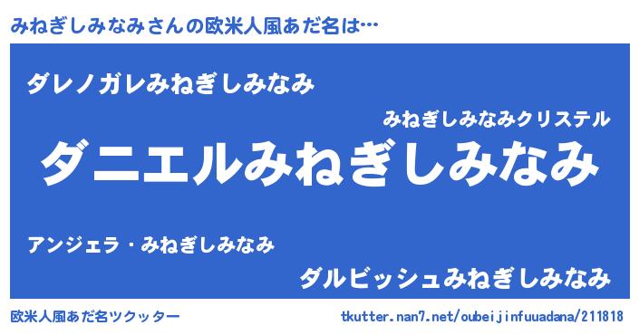 | 意味不明あだ名 | 『眠気覚ましガムみねぎしみなみ味』 |