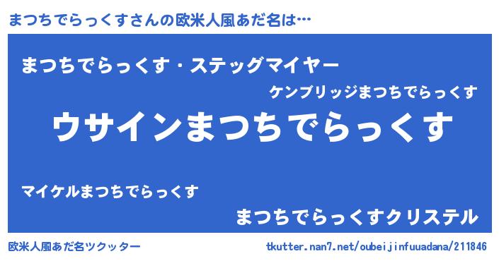 | 女子向けラノベタイトル風あだ名 | 『まつちでらっくすは平凡を望む』 |