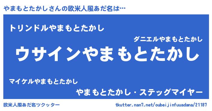 | 男性向けラノベタイトル風あだ名 | 『やまもとたかしの嫁は女の子じゃないと思った?』 |