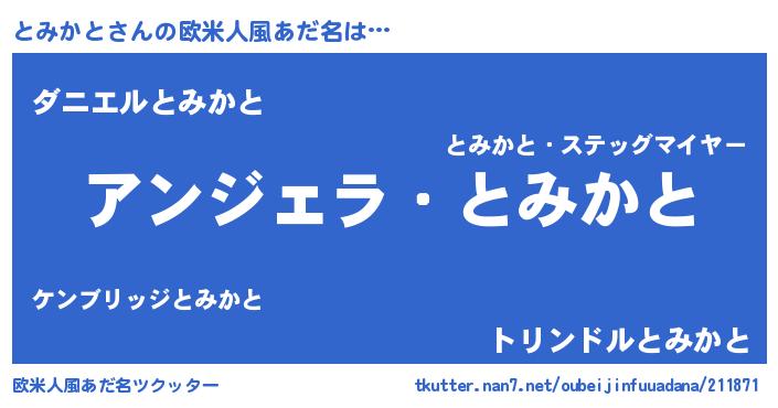 | 男性向けラノベタイトル風あだ名 | 『はたらくとみかとさま!』 |