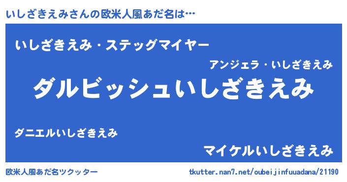 | 女子向けラノベタイトル風あだ名 | 『異世界で失敗しない100のいしざきえみ』 |