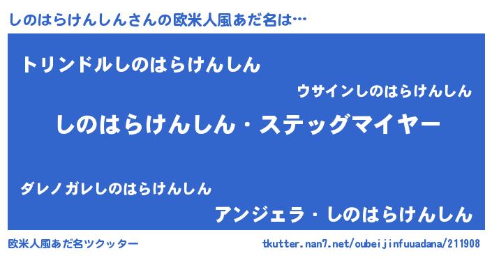 | 胡散臭い通販商品みたいなあだ名 | 『信頼と実績のサプリメント…その名も「しのはらけんしん」』 |