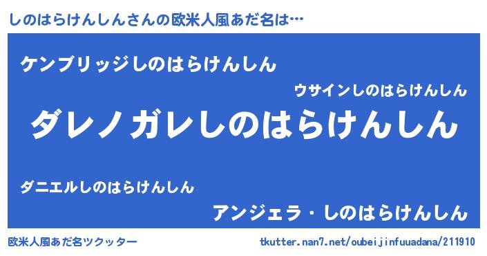 | 意味不明あだ名 | 『住所不定無職しのはらけんしん(14歳)』 |