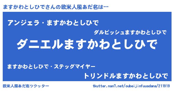 | 意味不明あだ名 | 『眠気覚ましガムますかわとしひで味』 |