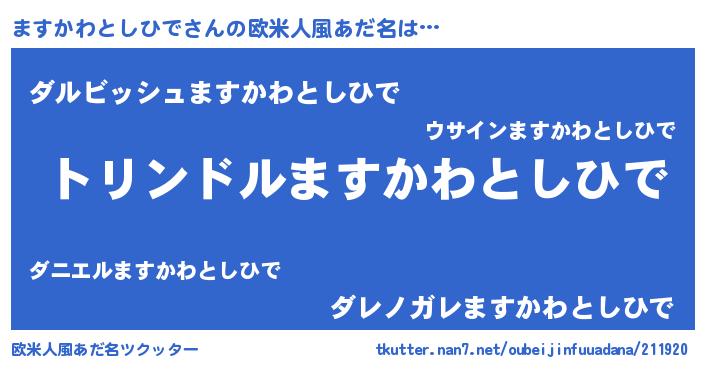 | ヘコむあだ名 | 『ますかわとしひで(笑)』『ますぷりん』 |