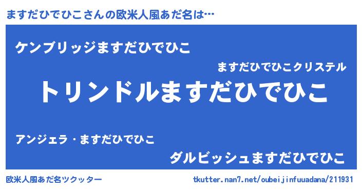 | 女子向けラノベタイトル風あだ名 | 『ますだひでひこの玉の輿計画!』 |