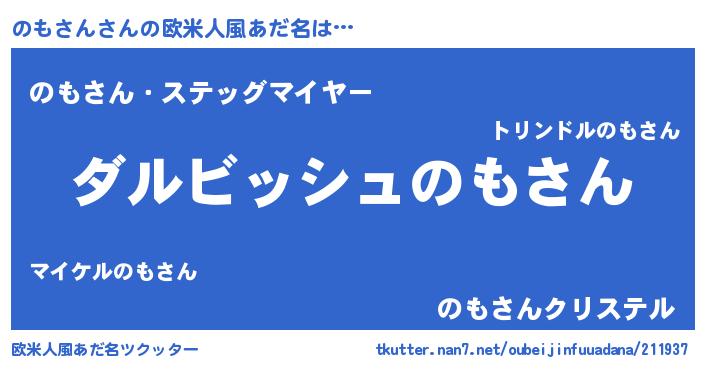 | 男性向けラノベタイトル風あだ名 | 『のもさんという概念が存在しない退屈な世界 』 |