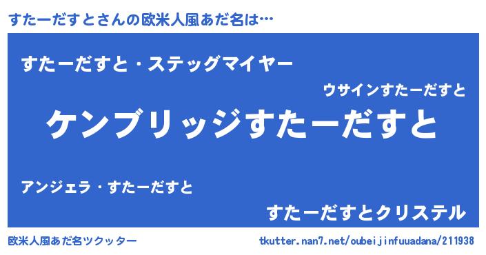 | 意味不明あだ名 | 『自称すたーだすと』 |