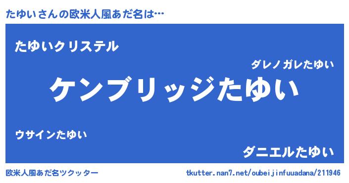 | 男性向けラノベタイトル風あだ名 | 『Re:たゆいから始める異世界生活』 |