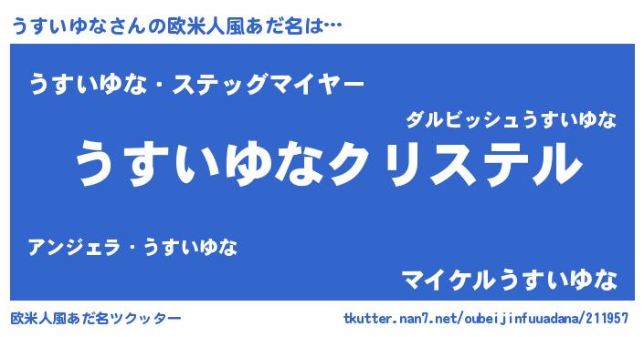 | 恥ずかしいあだ名 | 『うすっちょ』『プリティーうすいゆな』 |