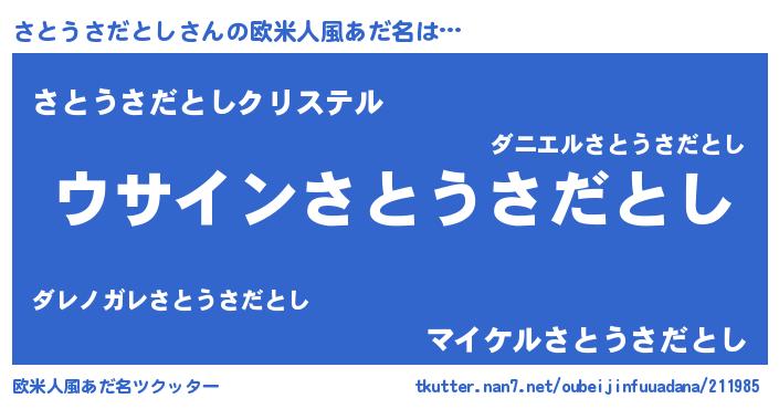 | 意味不明あだ名 | 『とにかく怪しいさとうさだとし』 |