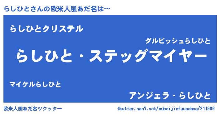 | ヒーロー風カッコイイあだ名 | 『ウルトラらしひとマン』『ネオラシヒト』 |