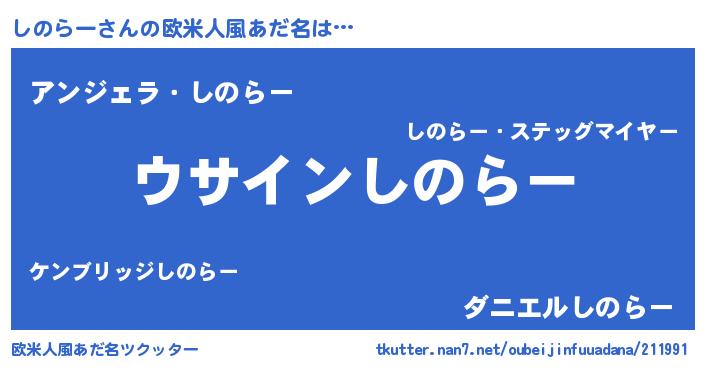 | 男性向けラノベタイトル風あだ名 | 『しのらーの嫁は女の子じゃないと思った?』 |
