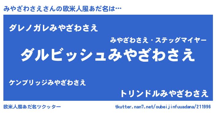 | 男性向けラノベタイトル風あだ名 | 『みやざわさえという概念が存在しない退屈な世界 』 |