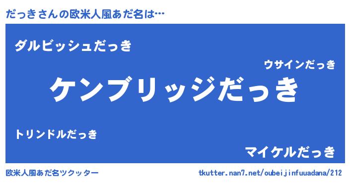 | 女子向けラノベタイトル風あだ名 | 『だっきストレイドッグス』 |