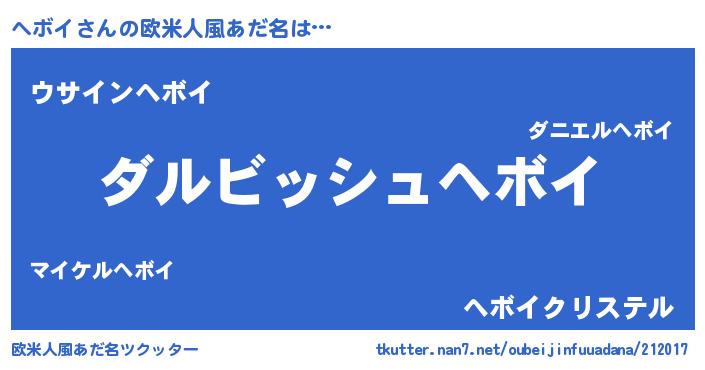 | 男性向けラノベタイトル風あだ名 | 『ヘボイという概念が存在しない退屈な世界 』 |