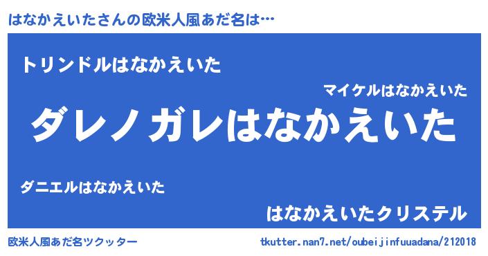 | 意味不明あだ名 | 『住所不定無職はなかえいた(47歳)』 |