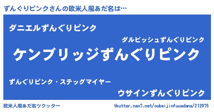| 男性向けラノベタイトル風あだ名 | 『Re:ずんぐりピンクから始める異世界生活』 |