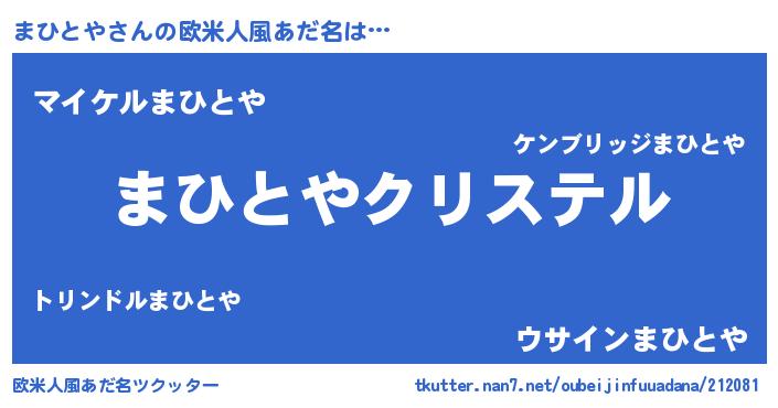 | 意味不明あだ名 | 『まひとやフォーエバー』『自称まひとや』 |