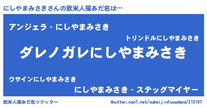 | 意味不明あだ名 | 『住所不定無職にしやまみさき(77歳)』 |
