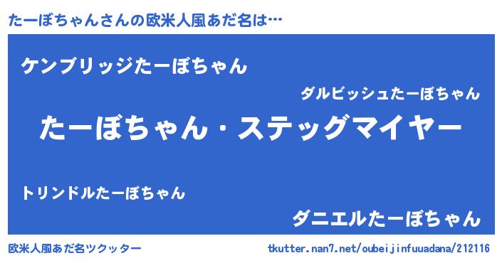 | ヘコむあだ名 | 『たーぼちゃん(遠い目)』『たーぷりん』 |