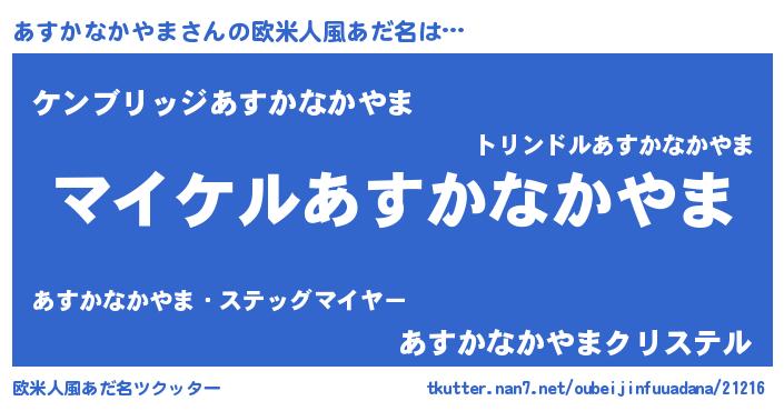 | 胡散臭い通販商品みたいなあだ名 | 『モテモテ間違いなし霊験あらたかなお札…その名も「あすかなかやま」』 |