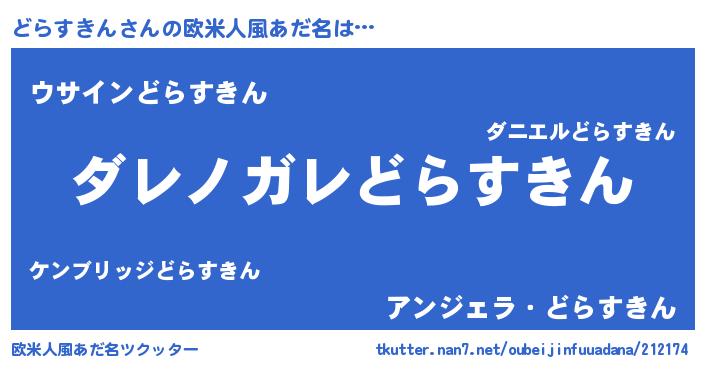 | 意味不明あだ名 | 『住所不定無職どらすきん(91歳)』 |