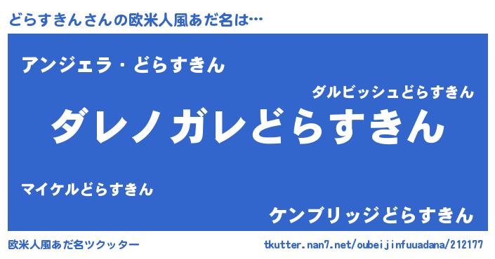 | 女子向けラノベタイトル風あだ名 | 『悪役どらすきんに転生したようですが、知った事ではありません』 |