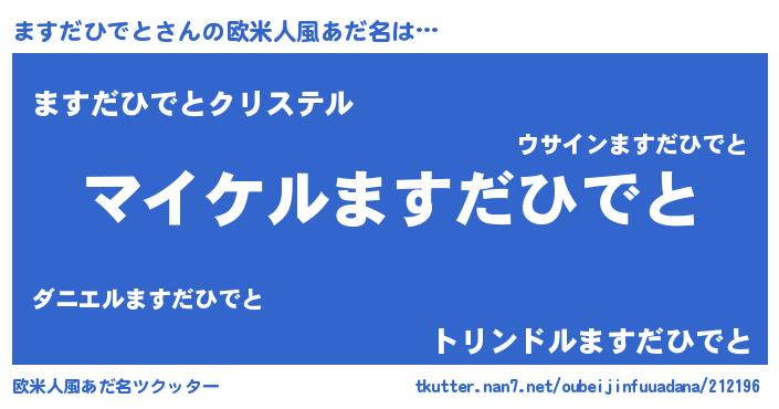 | 女子向けラノベタイトル風あだ名 | 『誰かこのますだひでとを説明してください! ~契約から始まるウェディング~』 |