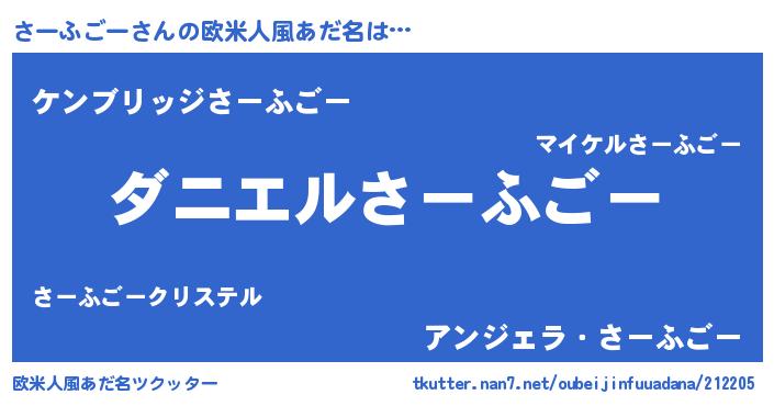 | 女子向けラノベタイトル風あだ名 | 『さーふごー恋絵巻』『闇のさーふごー』 |
