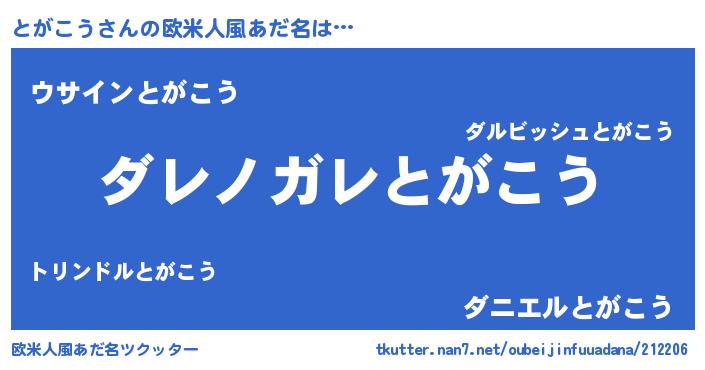 | ピコ太郎風あだ名 | 『トガ四郎』『トト太郎』『ピコト郎』 |