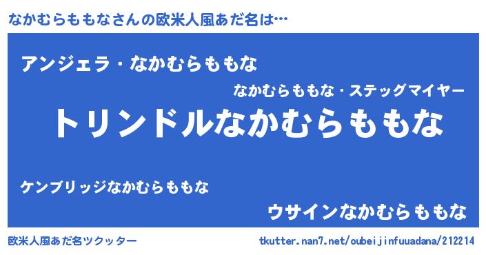 | 男性向けラノベタイトル風あだ名 | 『ナカムラモモナスレイヤー』 |