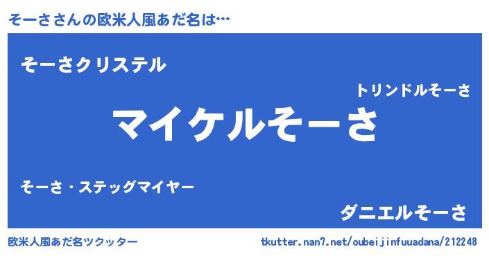 | 胡散臭い通販商品みたいなあだ名 | 『億万長者になれる霊験あらたかなお札…その名も「そーさ」』 |