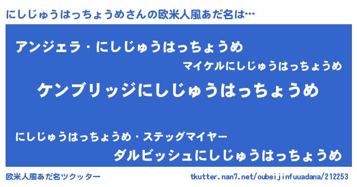 | 意味不明あだ名 | 『自称にしじゅうはっちょうめ』 |