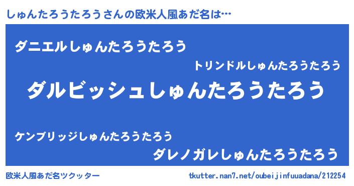 | 男性向けラノベタイトル風あだ名 | 『しゅんたろうたろうという概念が存在しない退屈な世界 』 |
