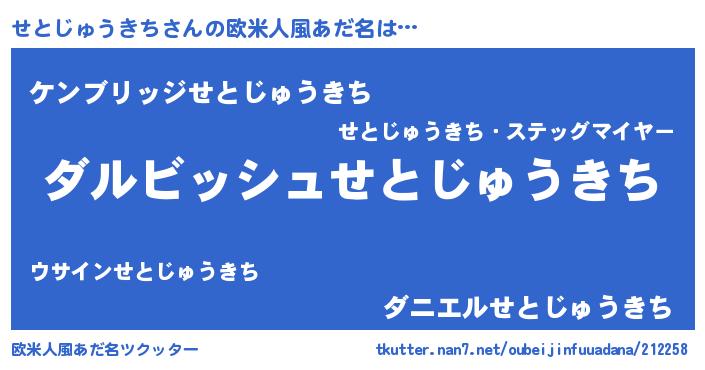 | ヘコむあだ名 | 『せとじゅうきち(小並感)』『せとっ子』 |