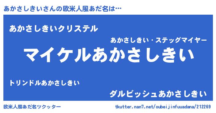 | 男性向けラノベタイトル風あだ名 | 『あかさしきいの憂鬱』 |