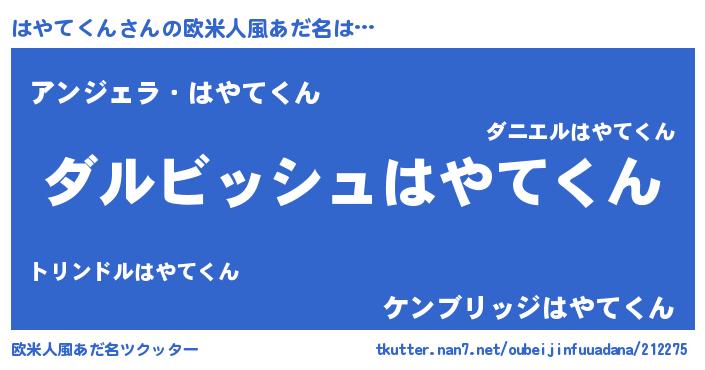 | 意味不明あだ名 | 『永久保存はやてくん』『自称はやてくん』 |