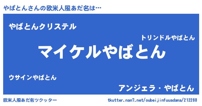 | 男性向けラノベタイトル風あだ名 | 『やばとんの憂鬱』『ヤバトンスレイヤー』 |