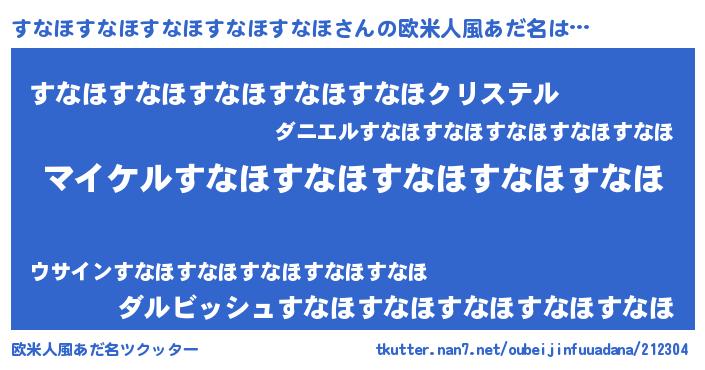 | ツイッター | すなほすなほすなほすなほすなほさんのツイッターID『fukuyoka_man』 |