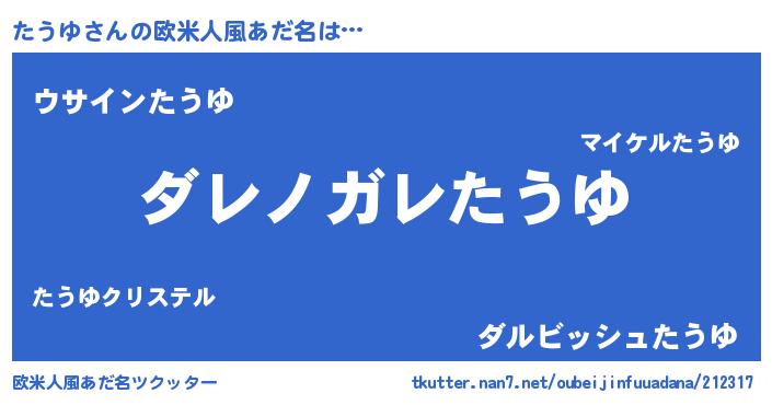 | 意味不明あだ名 | 『住所不定無職たうゆ(98歳)』 |